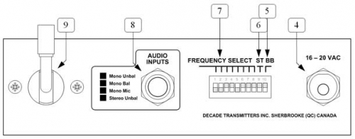 7. FREQUENCY SELECT : programmation de la fréquence d'émission.